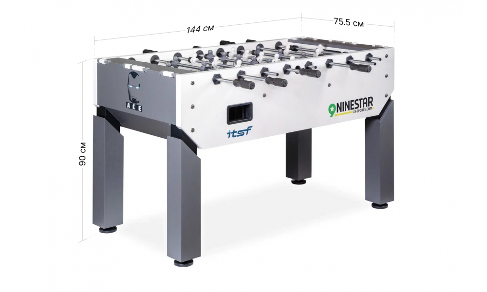 Настольный футбол Iron Men ITSF Grey от компании NINESTAR станет настоящим центром внимания в вашем доме, офисе или клубе. Его стильный и агрессивный дизайн, вдохновленный образом Железного человека, привнесет в любую комнату атмосферу динамичности и силы. Этот стол не только станет настоящим украшением, но и обеспечит максимальное качество игры, подходя для самых серьезных турниров и соревнований. Кроме того, стол соответствует всем требованиям для международных соревнований и прошел проверку ITSF (Международная федерация настольного футбола), что подтверждает его высокие стандарты и надежность для профессиональной игры.