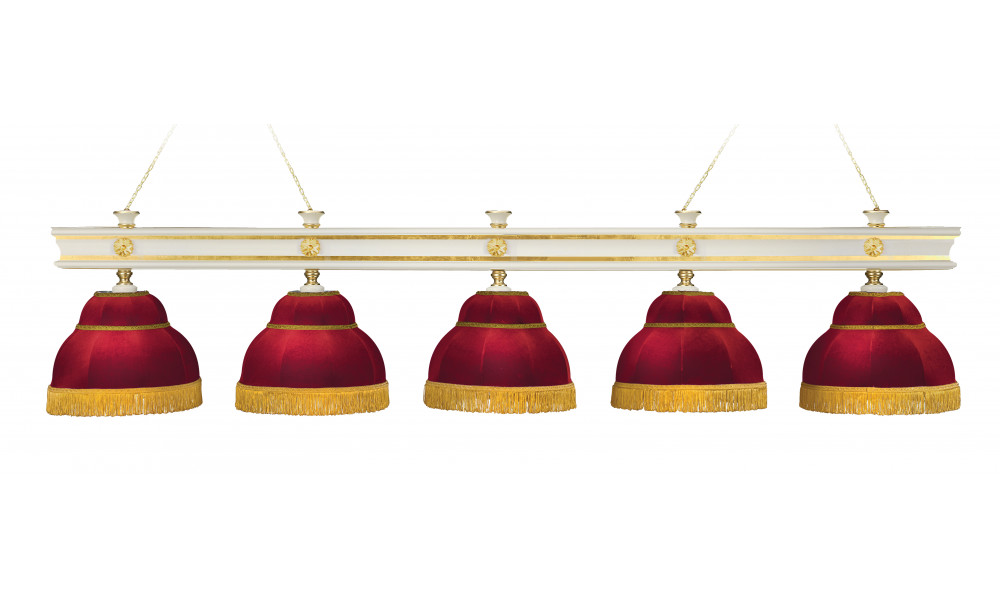 Модель выполнена из массива граба. Авторская выкраска Blanco Plumon. Конструкция включает в себя 5 плафонов, сделанных из бархата. Создан индивидуально под бильярдную коллекцию одноименной серии. Бильярдные коллекции Фабрики "Старт"- это уникальная галерея шедевров, которые создаются под изысканные интерьеры.