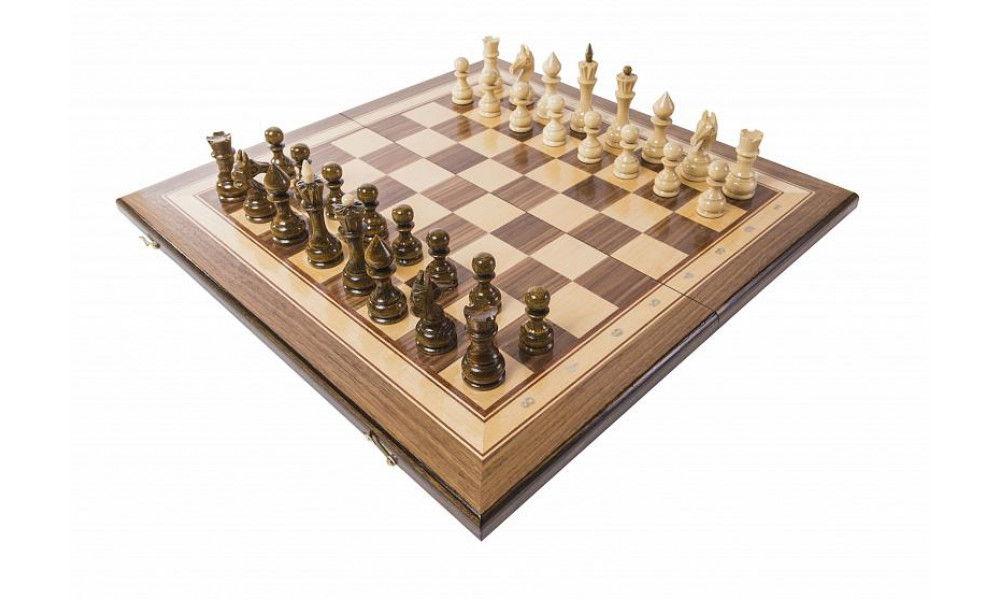 Классическая модель шахмат «Турнирные-1» с инкрустацией – идеальный вариант для тех, кто хочет купить долговечный и статусный набор для игры в шахматы. Такой комплект может стать прекрасным пополнением домашней коллекции или подарком дорогому человеку, любящему классические настольные игры. Доска и фигуры выполнены из высококачественного дерева и инкрустированы в технике маркетри натуральной древесиной драгоценных пород. Каждая фигура имеет подложку, предотвращающую царапание доски. Долговечная и износостойкая фурнитура доски сделана из металла.